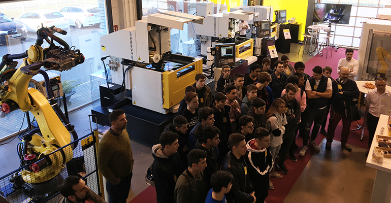 El día 29, las puertas se abrieron a los centros de formación. Aproximadamente 70 estudiantes y 8 profesores de las escuelas Salesians Sarrià e INS Llobregat visitaron las instalaciones y conocieron las soluciones de mecanizado y corte por hilo de FANUC.
